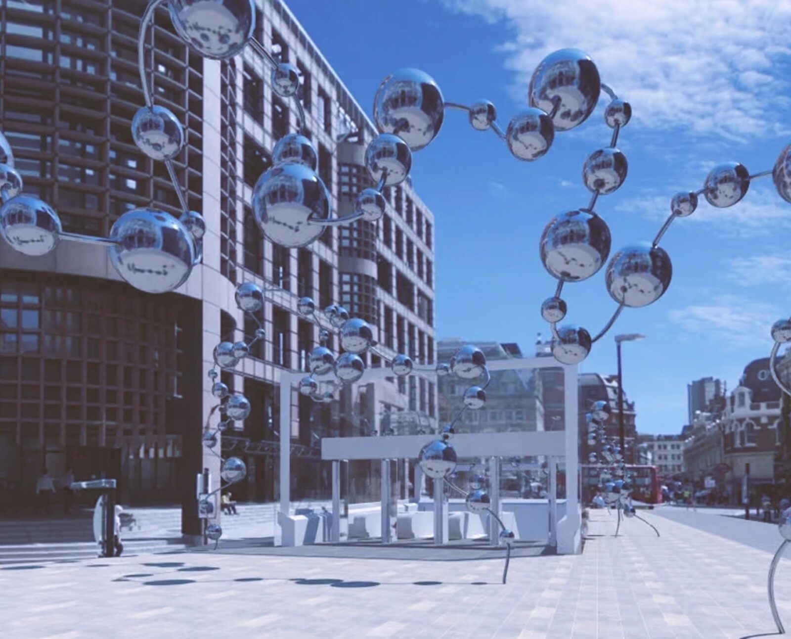 Najnovija ulična skulptura Yayoi Kusame upravo je postavljena ispred užurbane stanice Liverpool Street u Londonu. Ovaj rad, nazvan „Infinite Accumulation“ predstavlja vrtložnu masu metalnih kuglica na uvijenim žicama. Naravno, još jedan rad Kusame inspirisan je njenom prepoznatljivom temom sa tačkicama. Kusama je napravila skulpturu intuitivnim uvijanjem metalnih žica na malom modelu u svom studiju koje je zatim izvedeno u veličini 10 sa 12 metara i postavljeno kao stalna instalacija.