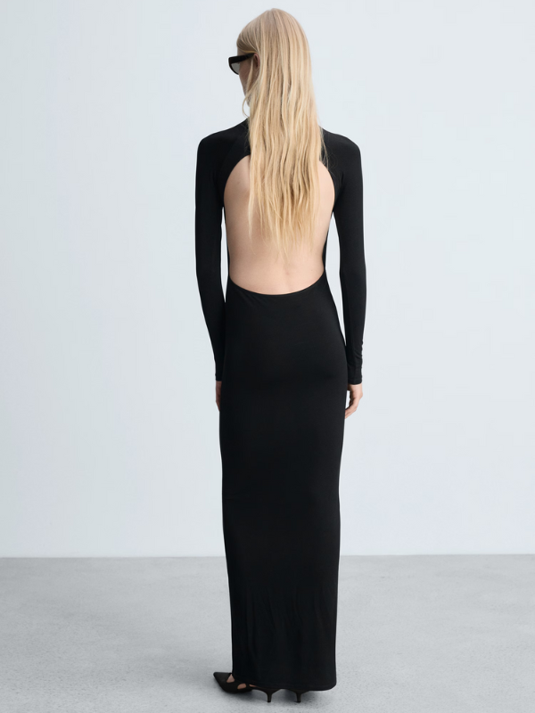 Nekada je i pokriveno seksi. Ne morate da otkrijete kožu da bi bili primećeni, nekada je dovoljno da kroj prati vaše telo. Ova duga, uska haljina sa otvorenim leđima pratiće vašu figuru u potpunosti. Gola leđa su zanimljivi detalj koji ovu, spreda jednostavnu haljinu, čini izazovnom i neočekivanom. Devil is in the details.