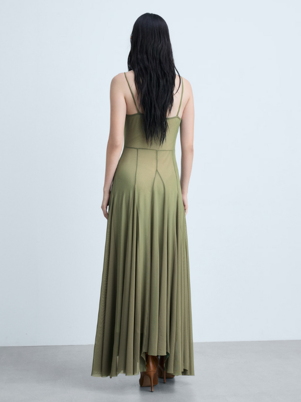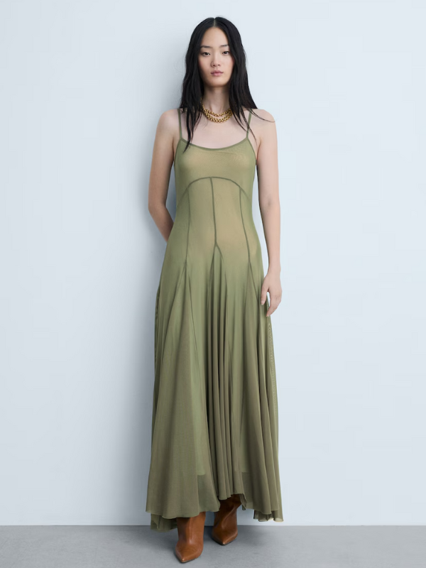 Maksi dužine su sezonama prisutne. Ovakve haljine su dobar izbor za slojevito oblačenje a u zavisnosti od kroja možete da ih kombinujete na dosta načina. Mango asimetrična haljina sa naše Social Club liste ići će izvrsno ispod teksas košulje ili sakoa peščanih tonova. Kaubojske čizme doprineće da autfit deluje modernije dok će baletanke učiniti stajling nežnijim i blažim.