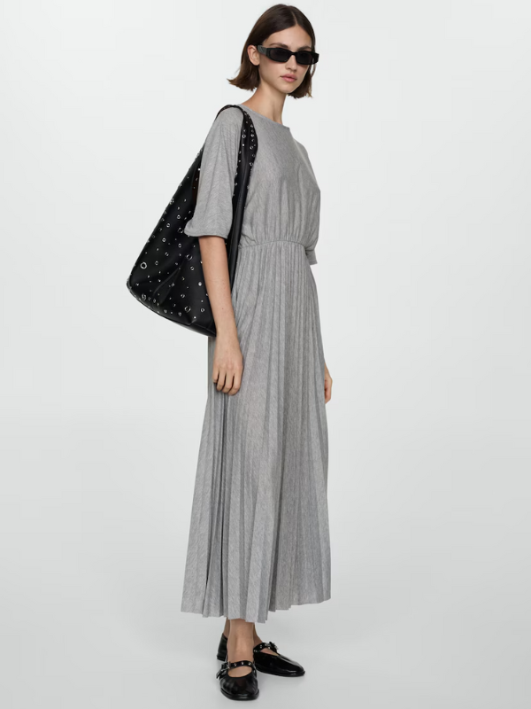 Siva haljina sa elastičnim strukom je za one dane kada želimo da budemo komforni. Širina rukava ne omogućava sako ili jaknu koju biste nosili preko. Stoga, za hladnije vreme odaberite tanku trikotažnu majicu ili polurolku dugih rukava koje možete da odenete ispod.
