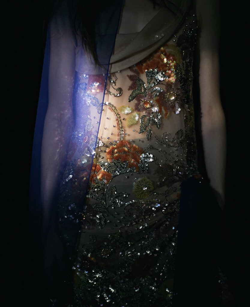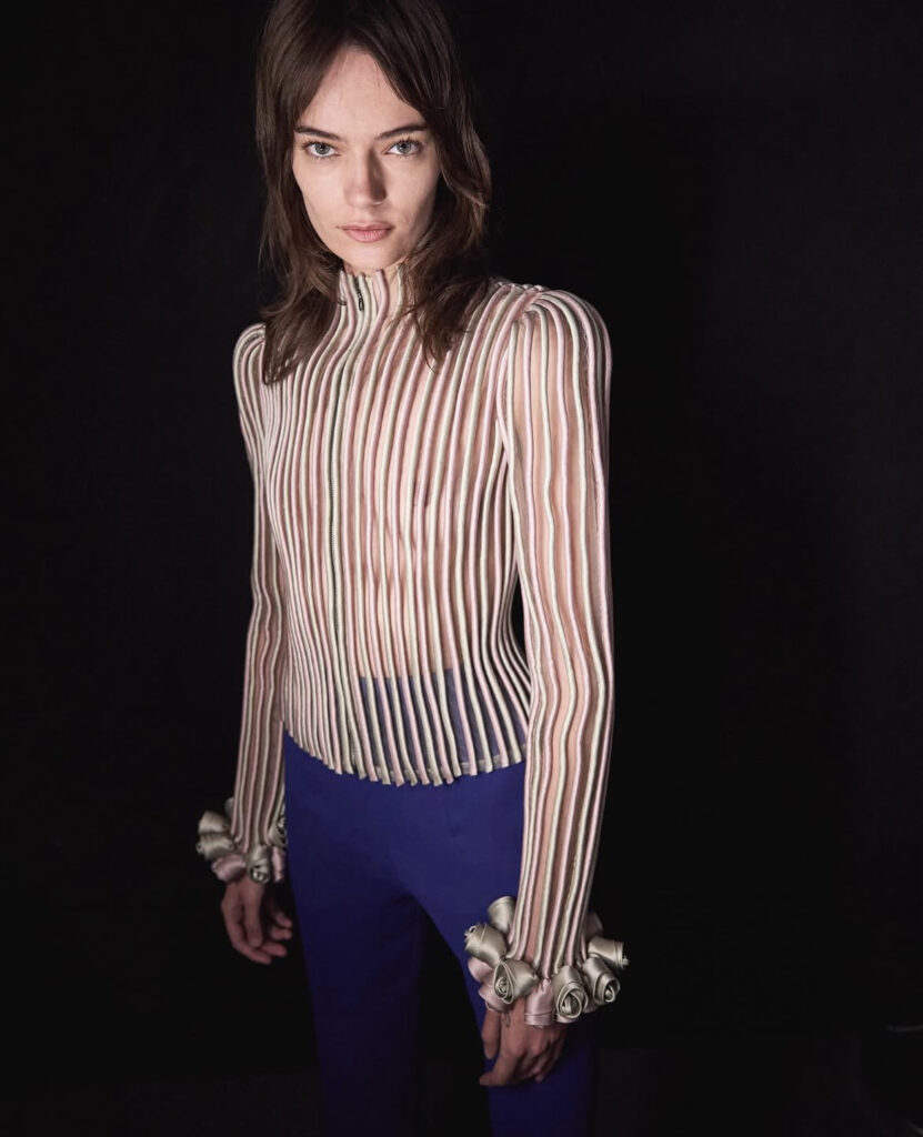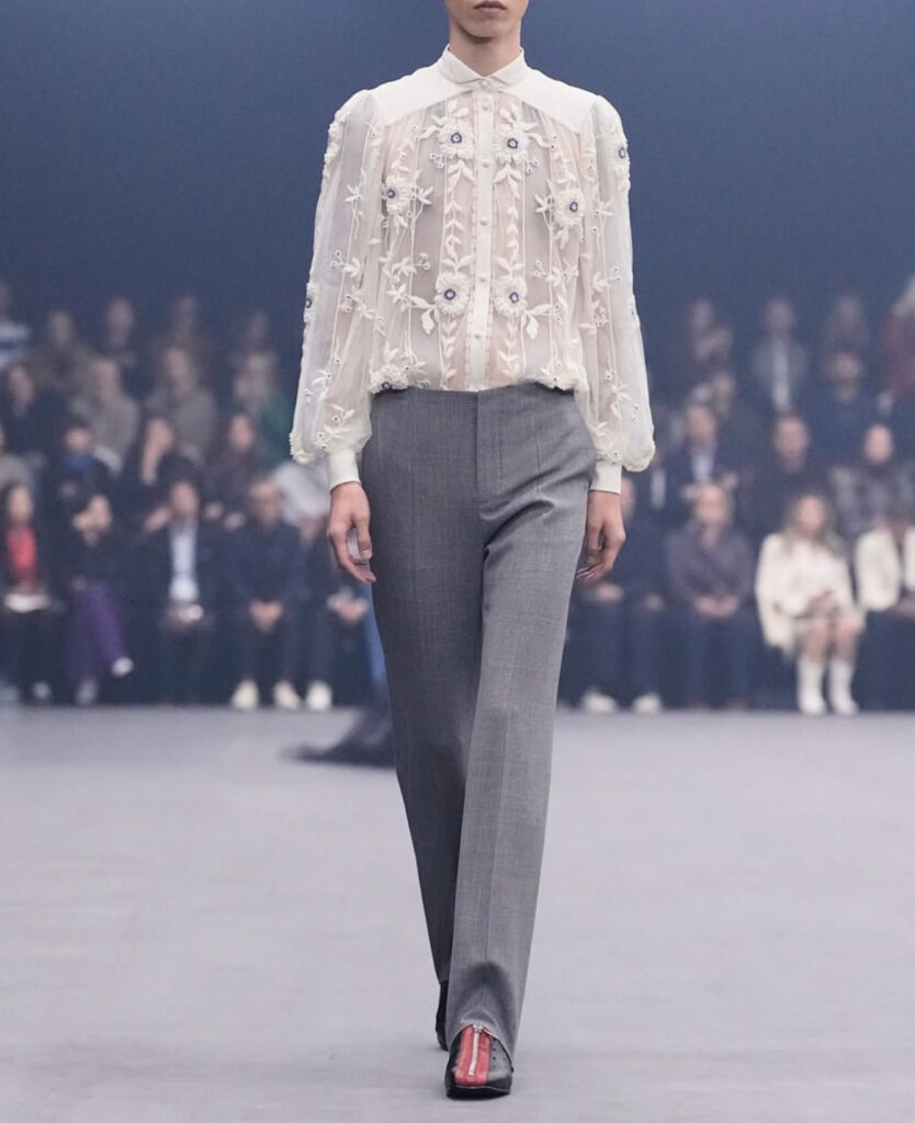 Kao i Gabrielle Chanel, Valentino oduvek govori o telu koje se oslobađa kroz tkaninu. Ovde to oslobođenje dolazi u obliku slojeva svile i tvida, otvorenih šavova, providnih materijala, i nesavršenih formi koje više podsećaju na emociju nego na disciplinu.