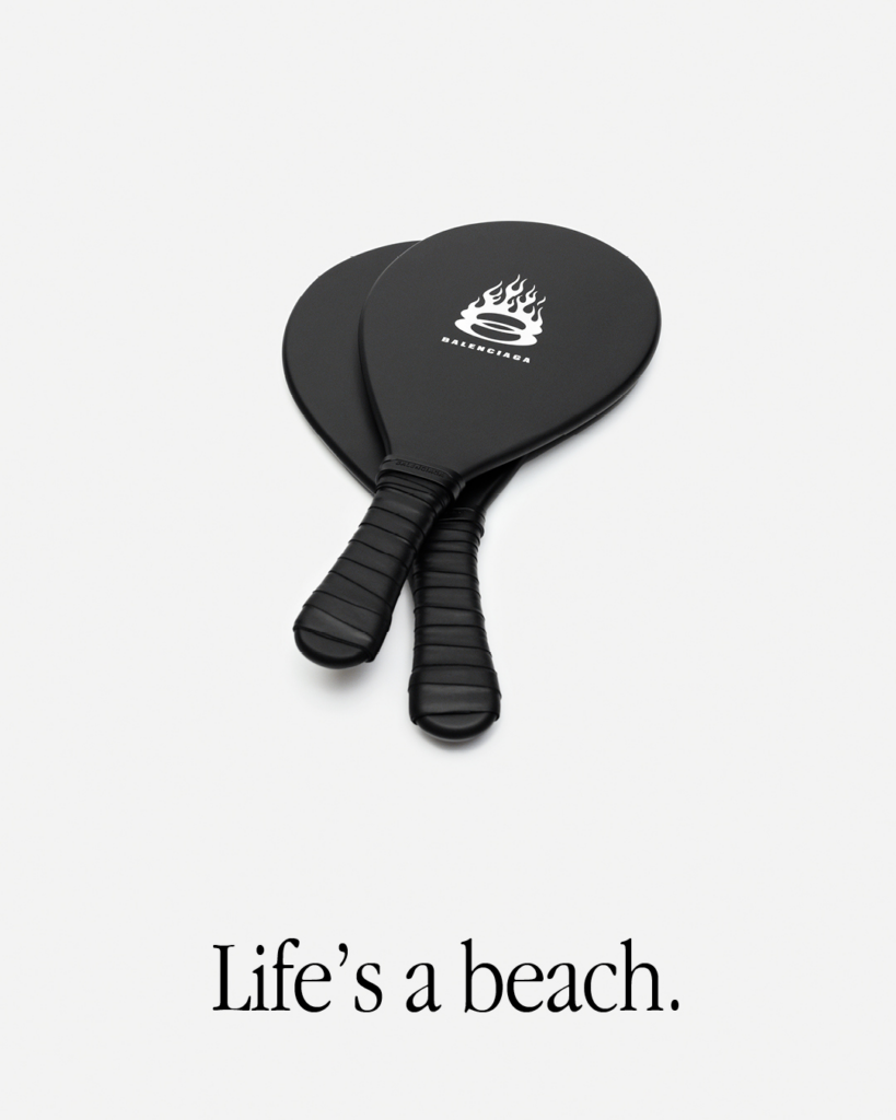 Linija uključuje odbojkašku loptu, veliki peškir, dasku za boogie, pola tuceta kugli za boćanje i set reketa. Sve u crnoj boji i obeleženo prepoznatljivom Balenciaga ikonografijom. Pomenuti komadi mogu se pronaći online a za one koji odlaze u francusku prestonicu, naći će se i u radnjama.