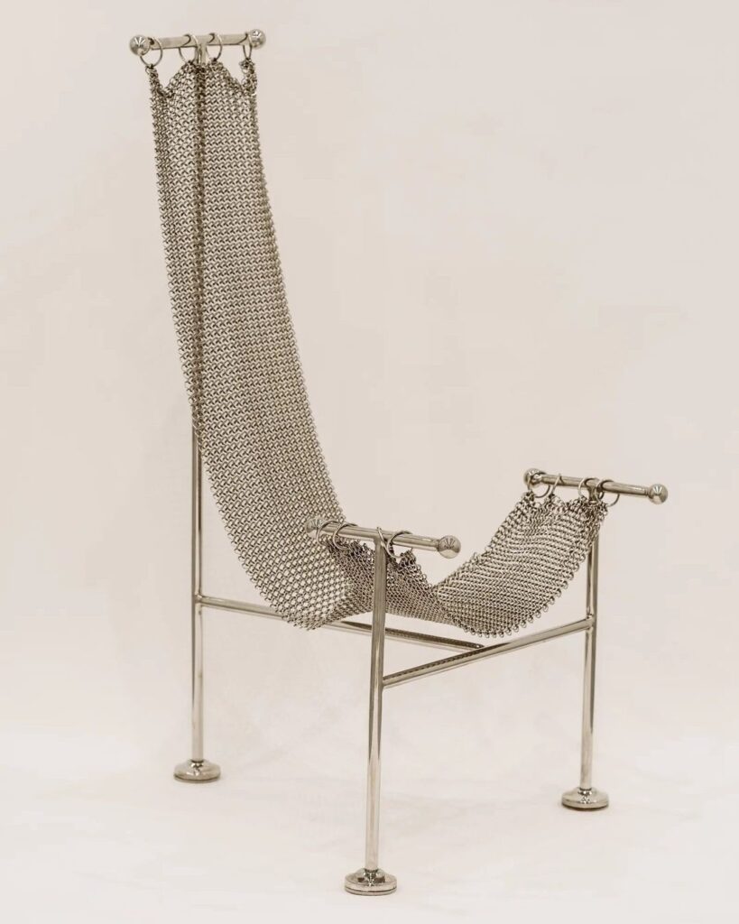 S druge strane, nameštaj od chainmaila izaziva podjednako divljenje i osećaj nelagodnosti. Tako je Panorammma Chainmail Chair, stolica sastavljena od preko 3,000 metalnih prstenova, privukla pažnju kolekcionara u showroomu TRNK. Ovaj komad je nesumnjivo upečatljiv, a njegova “restriktivna udobnost” i tvrd metal koji popušta pod težinom tela predstavljaju intrigantnu igru kontrasta.