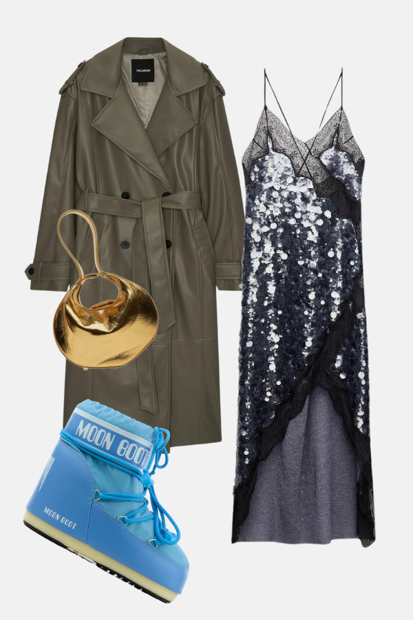 Možda je pravi trenutak da se usudite i obujete Moon Boot! One su zabavne, neočekivane i ne služe samo da vas greju. Njihova forma, naočigled vrlo neženstvena, idealno se sukobljava sa komadima kao što je Zarina haljina sa šljokicama i čipkom. Uz to dodajte kožni mantil, zlatnu torbicu i verujte, svako će se okrenuti za vama. Ovakav combo je epitom dobrog street style-a jer nekada spajajući nespojive komade dobijate najzanimljivije look-ove!