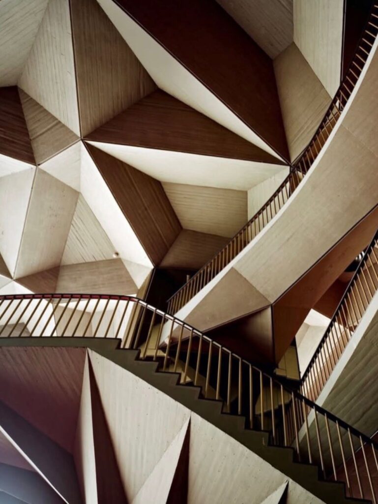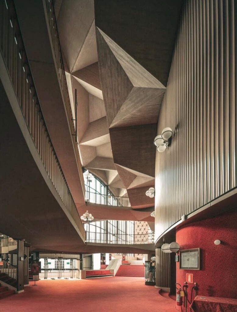 Foajei su gotovo labirintski, sa krivudavim linijama, nivoima i dramatičnim perspektivama koje podsećaju na scenografiju iz nekog nadrealnog filma. Upravo ta igra prostora i kretanja čini da se poseta teatru oseća kao performans pre nego što predstava uopšte počne.