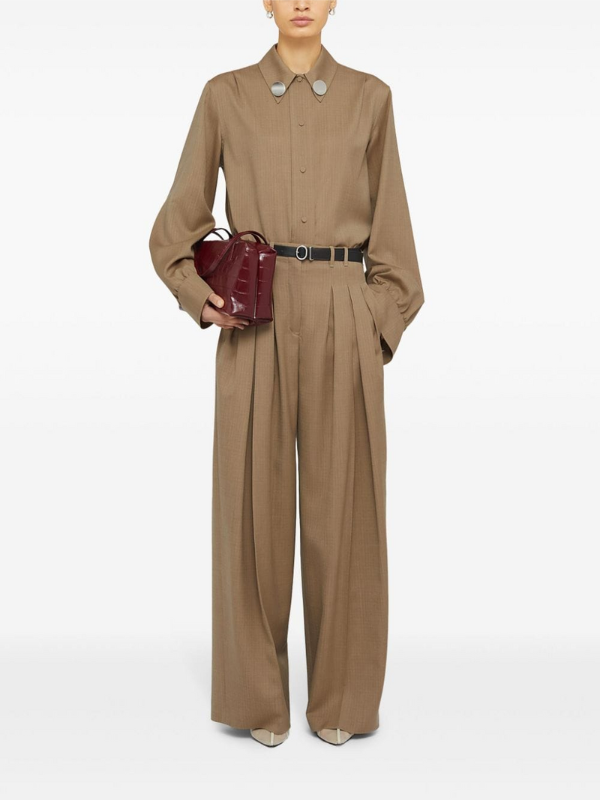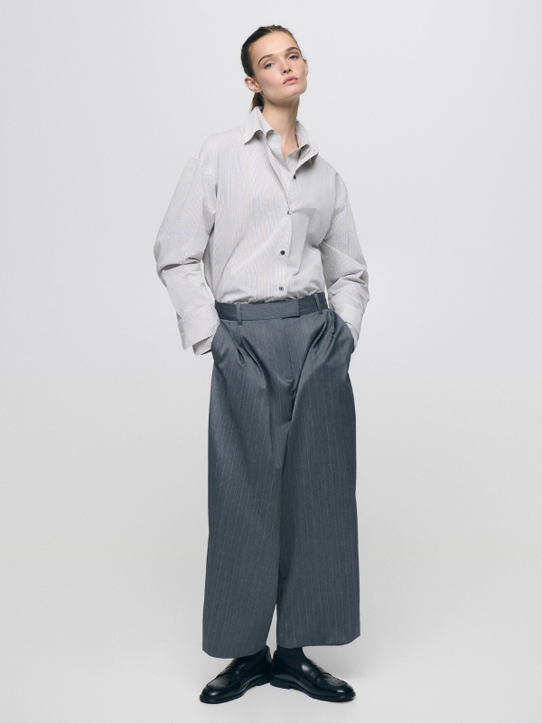 Za kancelariju, pantalone na peglu najbolje funkcionišu uz jednostavnu košulju ili bluzu. Dodajte sako u sličnom tonu i par kožnih salonki za besprekorno profesionalan izgled. Ako želite da ublažite formalnost, birajte pantalone u neutralnim bojama poput sive, crne ili teget, koje se lako kombinuju s gotovo svim komadima iz vašeg ormara.
