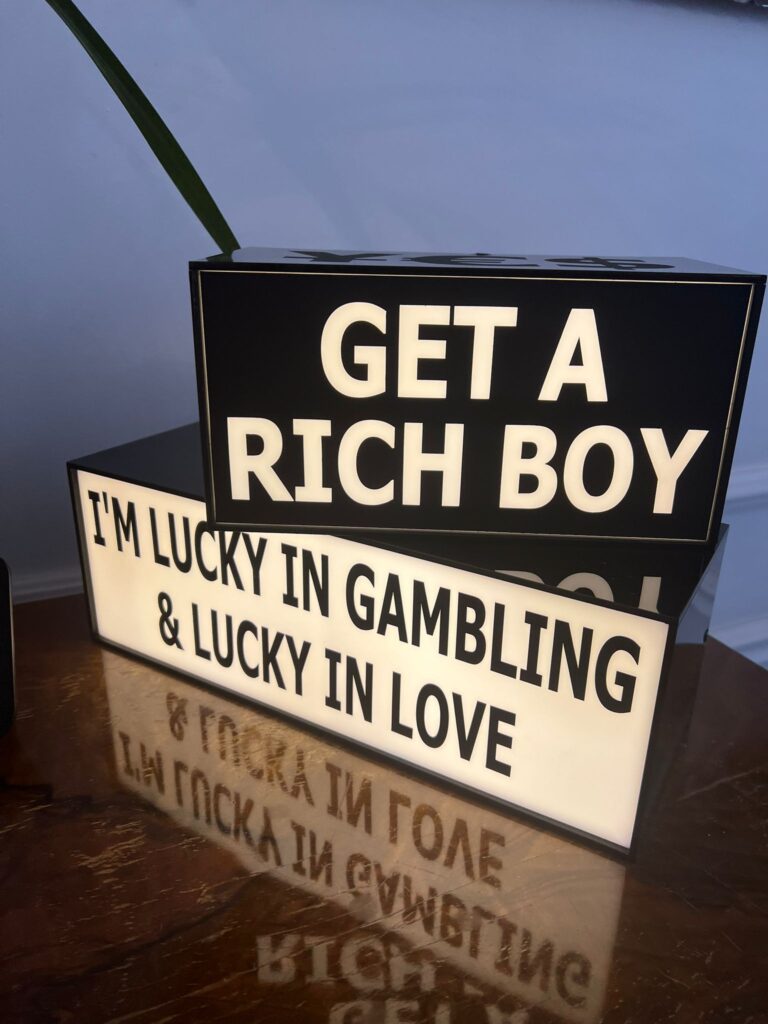 Neki pokloni sa posvetom “sebi” ostaju u vitrini ili na noćnom stočiću. Fraze kojima manifestujemo prosperitet i ljubav, a zvuče kao mantre: “SREĆA”, “LJUBAV”, “ORGASM” ili “HOĆU ODMAH SVE.”