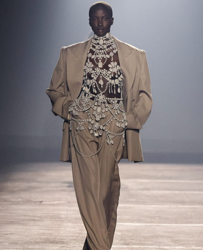 Za razliku od Thierry Muglera, koji je osamdesetih insistirao na spektaklu kao samostalnoj kategoriji, Freitas preispituje svrhu dramatike. Njegova kolekcija nije samo evociranje arhiva niti hommage, već prevod ključnih kodova u vokabular savremenog modnog trenutka. Telo jeste i dalje centralni fokus, ali sada nije objekat kontrole, već prostor izražavanja i slobode.
