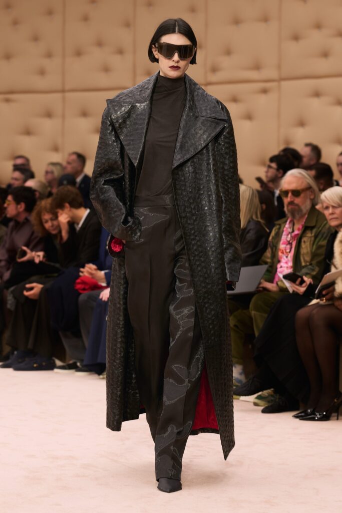 Na pisti smo videli komade koji istovremeno odišu snagom i elegancijom: strukturirane jakne, pažljivo drapirane haljine, teksture koje se kreću od matirane do polirane i detalje koji podsećaju na tehnološke šavove i precizne linije automobila. Paleta je sofisticirana, često suptilna, ali izabrani materijali i završne obrade govore o nečem što je istovremeno luksuzno i funkcionalno.