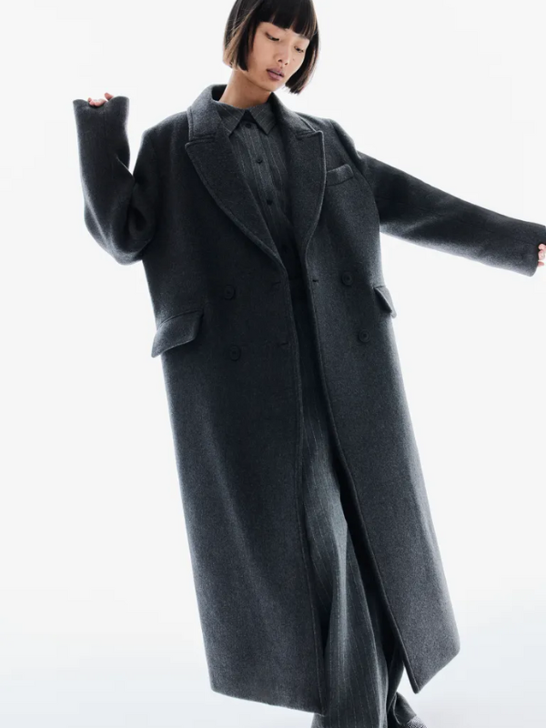 U pripremama za hladnije vreme izdvojili smo još neke artikle iz nove jesenje kolekcije među kojima je oversized sivi vuneni kaput geometrijske forme. Možete da ga nosite uz pantalone širokih nogavica. A za veče, uparite ga uz suknje ili haljine mini forme kao i visoke potpetice.