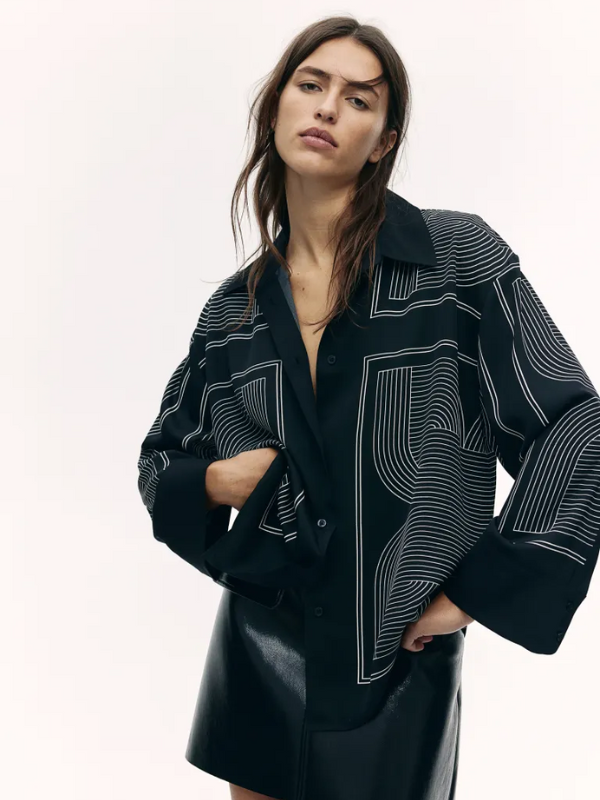 Najbolji H&M komadi ne mogu da prođu bez ove staple opcije. Košulja inspirisana Toteme printom idealna je za emuliranje Skandi stila. Uparite je sa rolkom dugih rukava, kaputom sa izraženim naramenicama i kožnim cegerom – i bićete prava sestra Olsen on a budget.