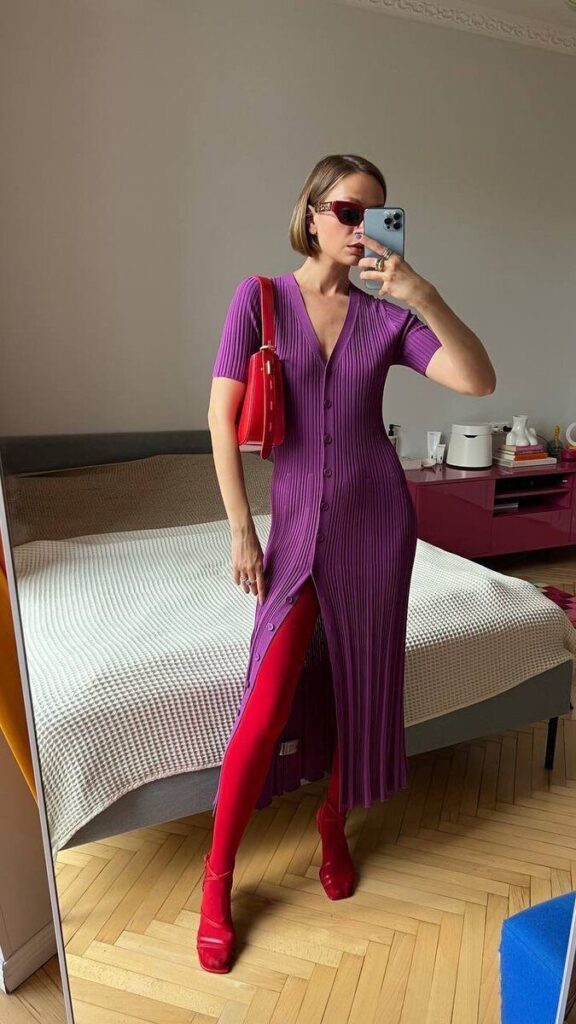 I možda najvažnije — ovo nije kombinacija koja traži savršenstvo. Naprotiv, njen šarm je u pomeranju granica i izlasku iz zone komfora. Crveno i lila zajedno poručuju da moda ove sezone ne igra na sigurno, već na osećaj. A to je, realno, jedini trend koji zaista ima smisla.