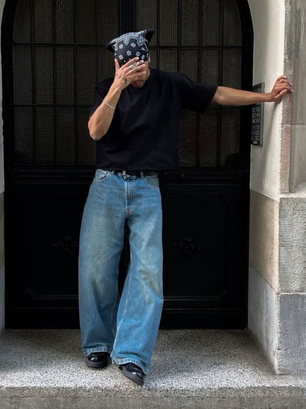Momci skraćuju majice ili ih kupuju kraće, kombinujući ih sa širokim, dugim pantalonama koje se vuku po podu i cepaju od gaženja – poznato i kao heel bite.