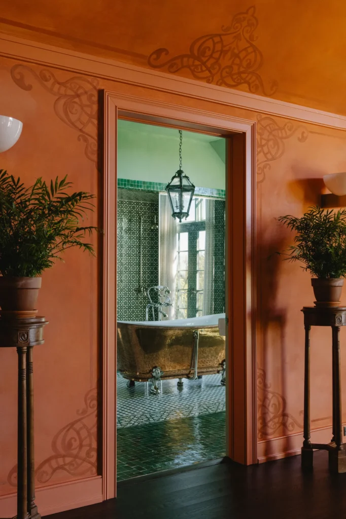 Još jedan ključni deo ovog doma je njegova sposobnost da balansira intimnost i prostranost. U spavaćim sobama, teksture tkanina, zidnih boja i teškog drvenog nameštaja stvaraju utočište koje priziva tišinu — ali ne izostanak karaktera. Svaka soba zadržava svoj duh, bez osećaja prenatrpanosti.