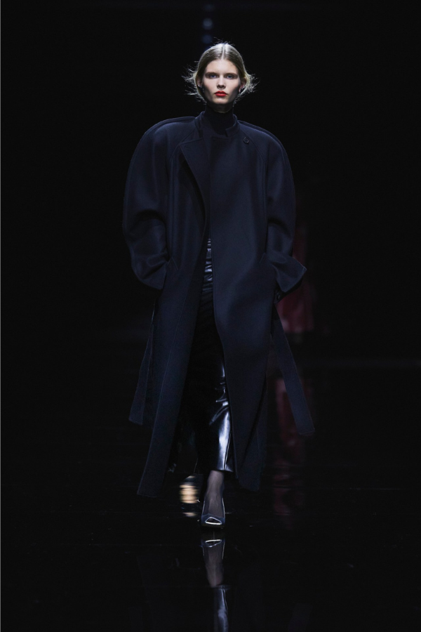 Khaite ponovo postavlja standarde sa svojom neustrašivom estetikom. Povratak crne u formi oversized kaputa, crnih kožnih pantalona i cipela sa blok štiklom stvara stil koji spaja svedenost i upečatljivost. Tanke crne čarape dodaju finalni dodir, stvarajući savršenu ravnotežu između glamura i jednostavnosti.