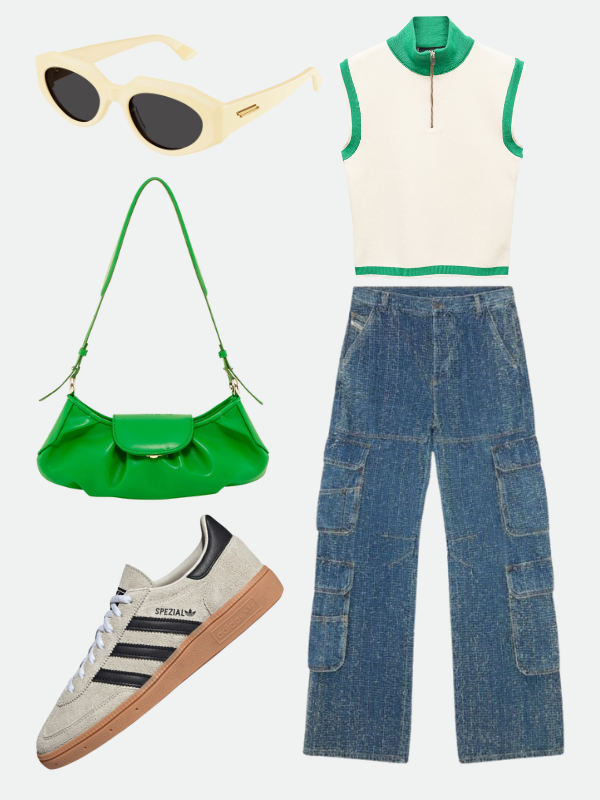 Kargo pantalone se nalaze svuda, od high street do onih vrlo skupih verzija. Daju dozu coolnessa i nonšalantnosti, čineći stajling mnogo spontanijim. Cool girl look smo koordinisali bojama, uklapajući jarko zelenu uz mlečno bele tonove.