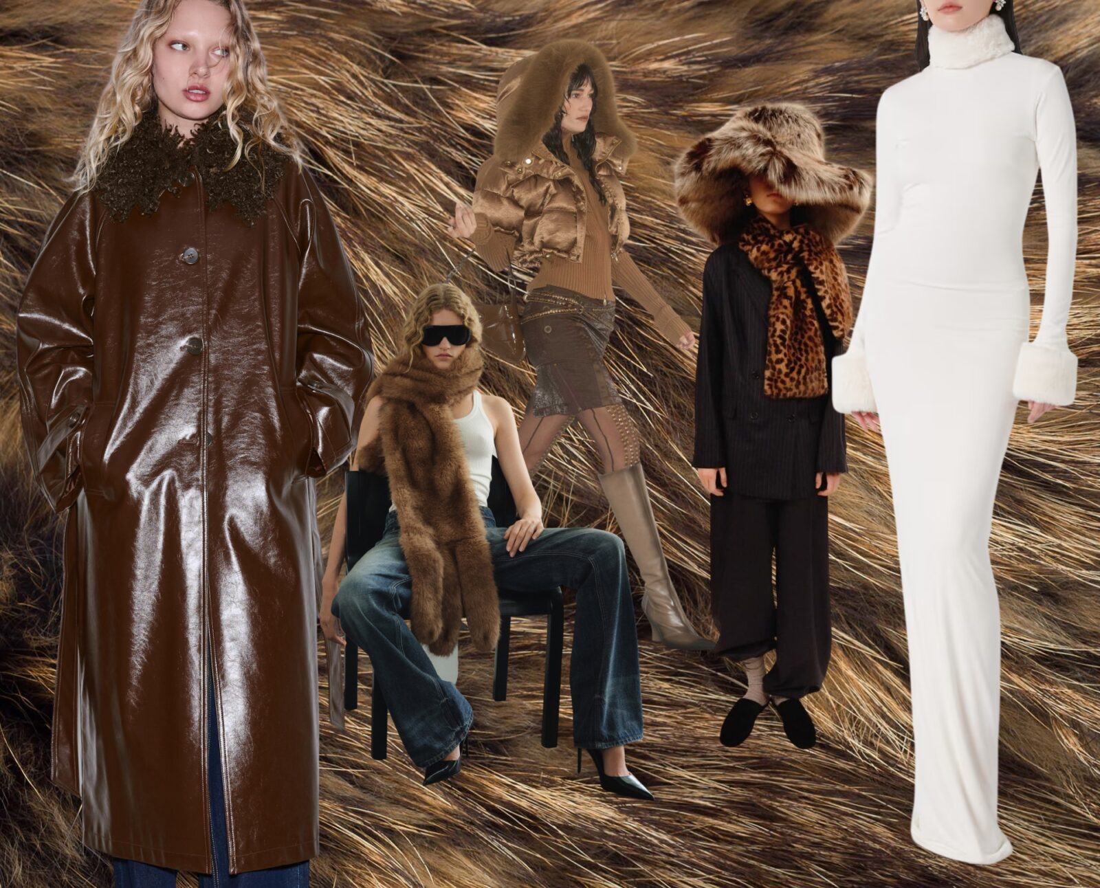 Komadi sa krznom dolaze u formi retro džempera sa krznenim okovratnicima i rukavima, zatim u vidu jakni i kaputa, ali i kao detalji na torbama i obući. Na high street sceni izbor je prilagođen svakodnevici: nosive i komercijalne opcije su uglavnom kaputi, mantili i jakne sa krznenim akcentima, uz poneku pleteninu. Sa druge strane, luksuzni dizajneri vide krzno kao maksimalistički izraz, pa kolekcije obiluju dekadentnim i odvažnim rešenjima.