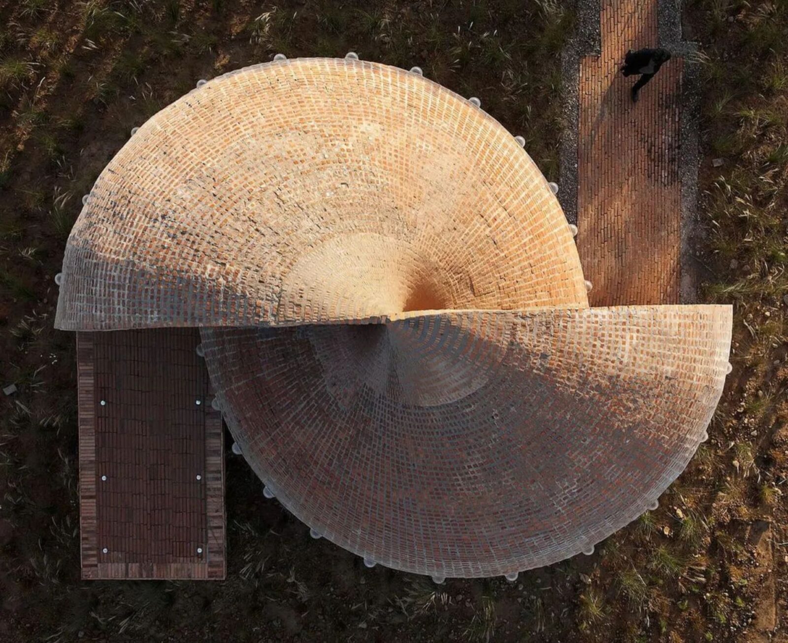 Dizajn Twisted Brick Shell biblioteke potiče iz inspiracije klasičnim kineskim graditeljstvom i tehnikama obrade cigle. Ova biblioteka ima jedinstvenu, spiralnu formu koja se u potpunosti oslanja na tradicionalni materijal. Međutim, ona ga koristi na nov, dinamičan način. Zidovi su sastavljeni od slojeva cigle koji su pažljivo raspoređeni kako bi formirali strukturu koja izgleda kao da se okreće i uvija. Razigranost u slojevima cigle omogućava da prostor izgleda kao da „diše“, čime se stvara osećaj fluidnosti. Vrhunska upotreba različitih debljina maltera između cigli dodaje dodatnu dimenziju ovom prostoru, dok složeni, pikselizovani uzorak čini da zidovi izgledaju kao da se stapaju u okolinu, povezujući biblioteka s prirodom i ruralnim krajolikom.
