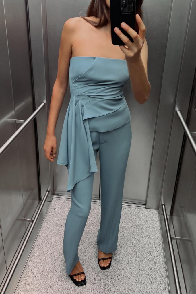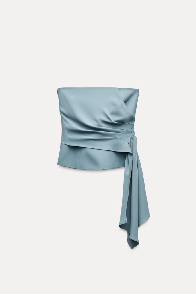 Drapirani Zara top je versatilni komad koji može da se nosi u različitim prilikama. Za dnevnu varijantu možete da ga kombinujete uz široki jeans, maksi teksas suknju i kratku jaknu, a za elegantnije varijante odaberite pantalone u istom tonu.