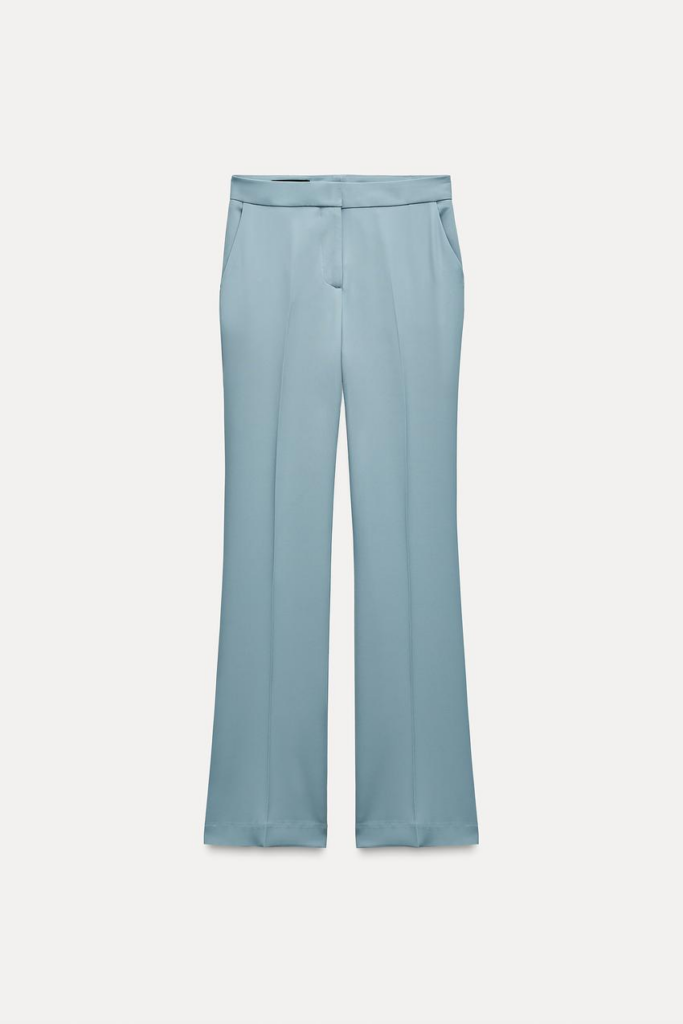 Pantalone blago zvonastog kroja vizuelno će izdužiti vašu siluetu. Odabrali smo svetlo plavi komad koji je deo Zarinog kompleta a idealan za događaje kada morate da budete za nijansu sofisticiraniji. Kad ih nosite zasebno uparite ih sa pleteninama u boji peska i čizmama sa niskom potpeticom.
